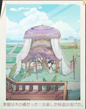 | 内容 | 怪盗の噂が広がり、空桑もその標的になっているようです!一体何が起きていたのかを調査しに行きましょう。東璧龍珠と一緒に、荘園で手がかりを見つけて真相を明かしましょう!事件が解決した場合には素敵な報酬が若さまを待っています! |