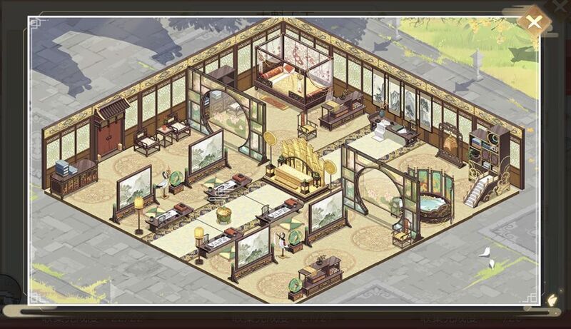 ![]() 聚宝琳琅浴 | チーム専属家具。数人が同時に使える聚宝盆浴槽。天下の珍宝を集め、風雅の気を浴びる。上つ方がお越しになれば、池から数え切れないほどの金銀宝石が溢れてくる。 |