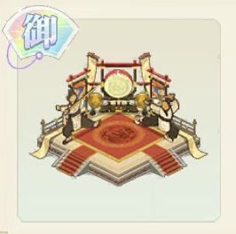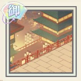 ![]() 隔綺窓 | 夜市シリーズ家具。華麗な低い壁。細かい彫刻が施され、外が透けて見える。行き交う人々の中に運命の人がいて、良縁が結ばれるかもしれない。 |