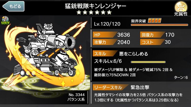 猛銃戦隊キンレンジャーのステータス