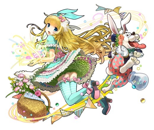 ![]() | 色とりどりの物語 アリス | 光 | 5 | 超越 | 自分の攻撃力×5倍の光属性攻撃を行う チェインが10の倍数のときは、8倍の攻撃になる | 味方の光属性と超越系タマシイの攻撃力が2倍、 HP80%以上の時に2.5倍になる |
