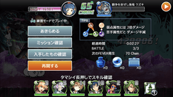 - この編成は3戦目のクズキを封殺することを前提としたものなので、【禁術師 ジュリ】等を用いて敵の攻撃を受ける前提でパーティーを編成してはいけない。サユリを持っていない場合は、遅延、変換、ダイブのスキルを持つタマシイを編成しよう。