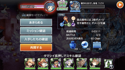 | 水 | ★6 | 闘争を封ぜし海竜 クズキ HP:17,000,000 防御力:5,000 | 3バトル目固定出現 ★5終焉を望む政治家 クズキ 確定ドロップ |