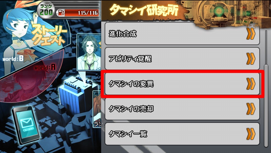 「タマシイ研究所」から「タマシイの変異」を選択できるようになります。