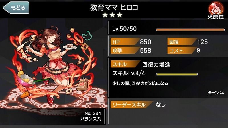 | 初期回復 | 70 | 最大回復 | 125 |