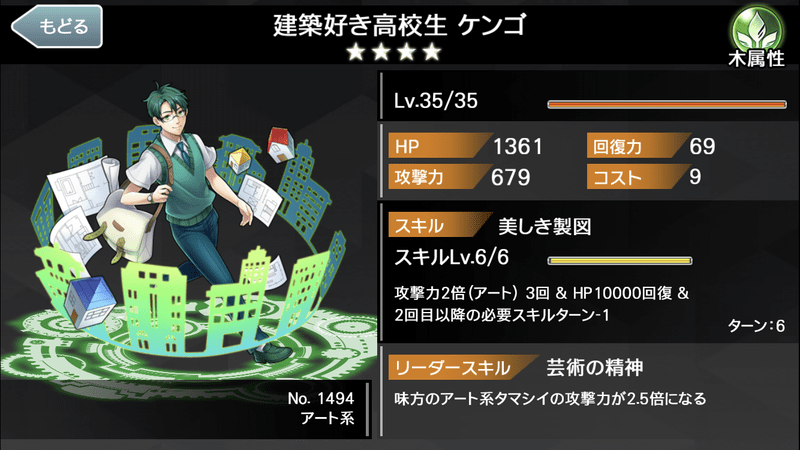 | 詳細 | 攻撃力2倍(アート) 3回 & HP10000回復 & 2回目以降の必要スキルターン-1 |
