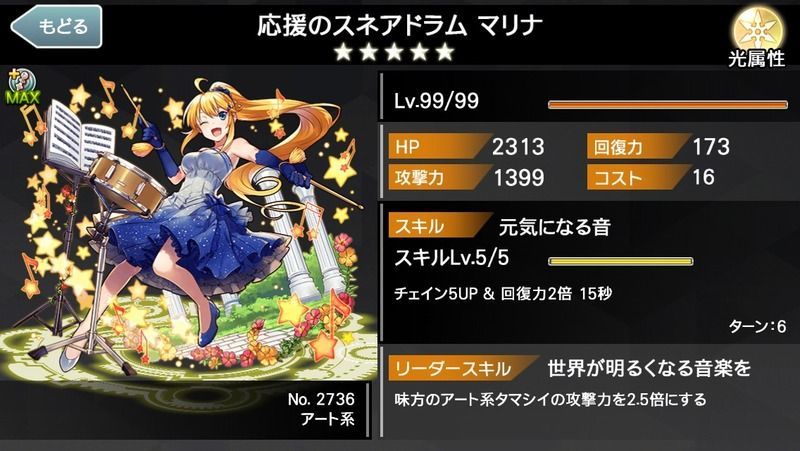 応援のスネアドラム マリナのステータス