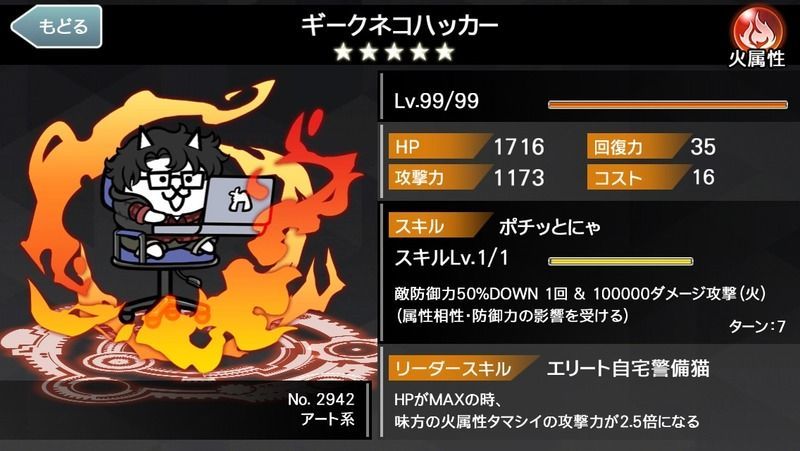 | 詳細 | HPがMAXの時、 味方の火属性タマシイの攻撃力が2.5倍になる |