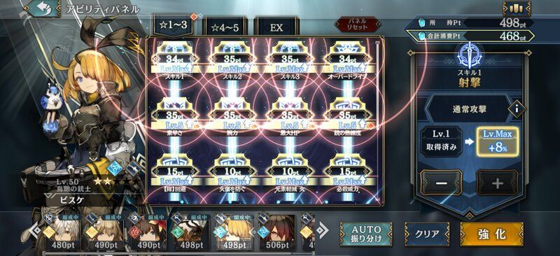 アビリティパネルではパネルPtを使用することで、キャラクターのステータスを上げたり、スキルを獲得することができます。