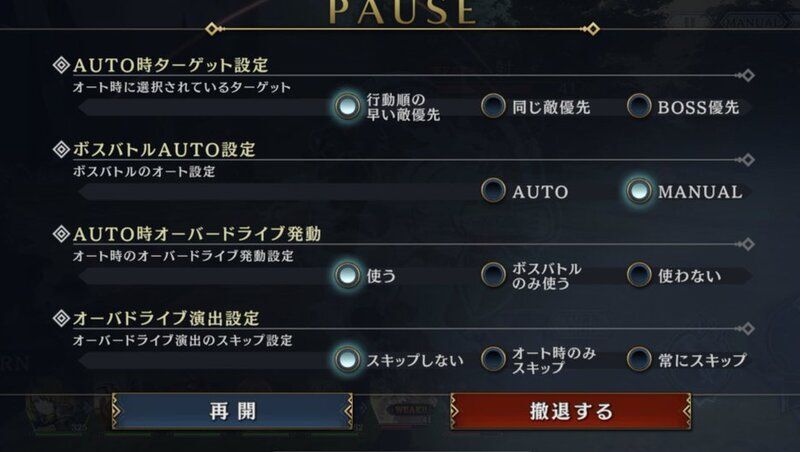 バトル前にAUTO行動の設定で使いやすい機能に変更しましょう。