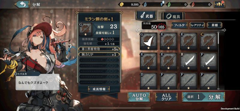 キャラクターたちはダンジョンで戦うことで経験値が上がり、レベルアップしていきますが武器の強化でも強くなります。