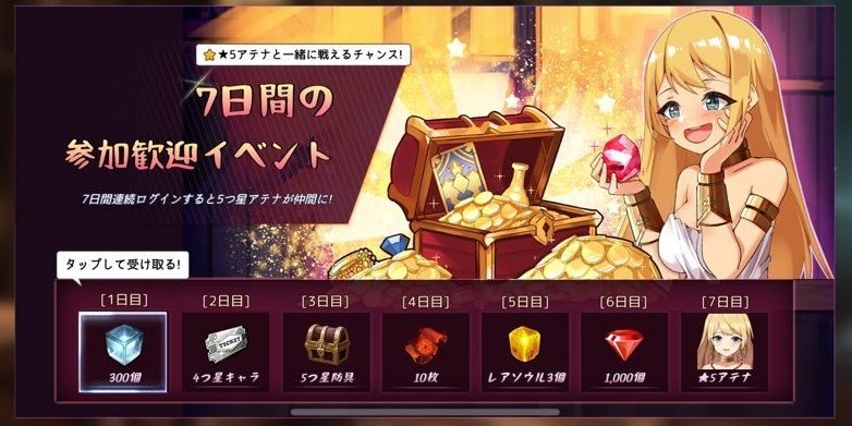 ログイン報酬では、本ゲームを進めるにあたって必要な