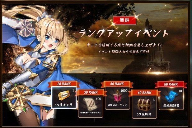 | ログインチェック | 報酬獲得 例:ルビー、PVP鍵、5つ星防具 5つ星キャラ、4つ星キャラ |