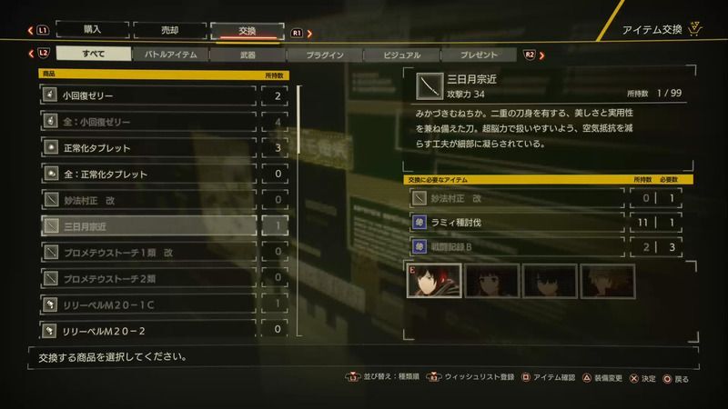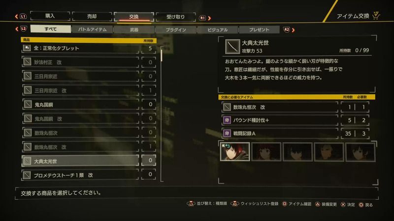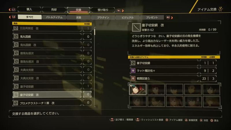 フェイズ11の終わりでは「童子切安綱 改」の交換が可能です。