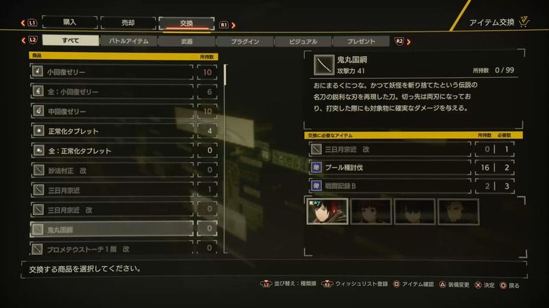 フェイズ4の終わりでは「鬼丸国綱」が購入もしくは交換が可能です。