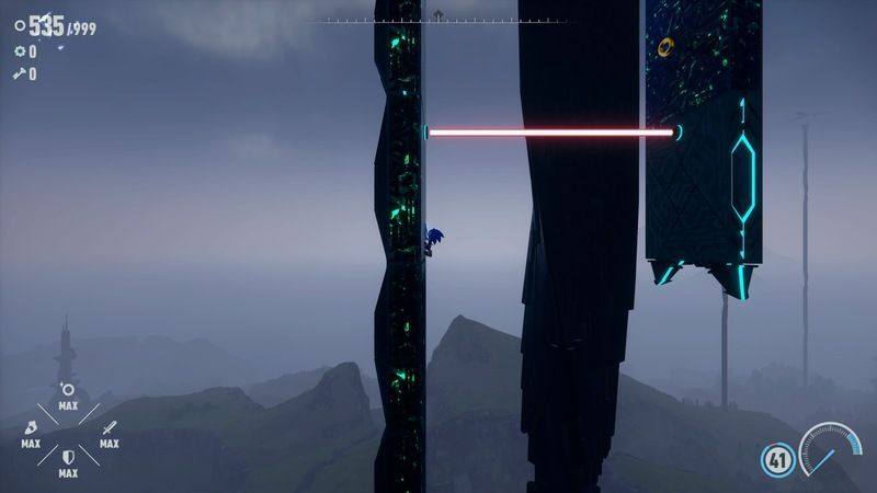 右の壁に移動する場面ですが、壁に捕まった後は下手に移動するとソニックが下に滑って落ちてしまいます。