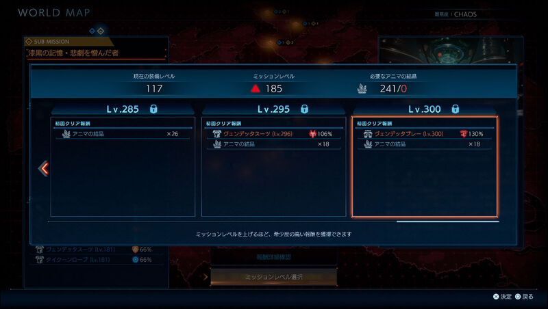 | Lv.295 | 208 | ・ヴェンデッタスーツ(Lv.296)x1 ・アニマの結晶x18 |
