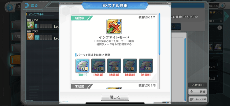 ユニット毎に設定された特定のコアパーツを装着する事で「EXスキル」を発動させる事が出来ます。