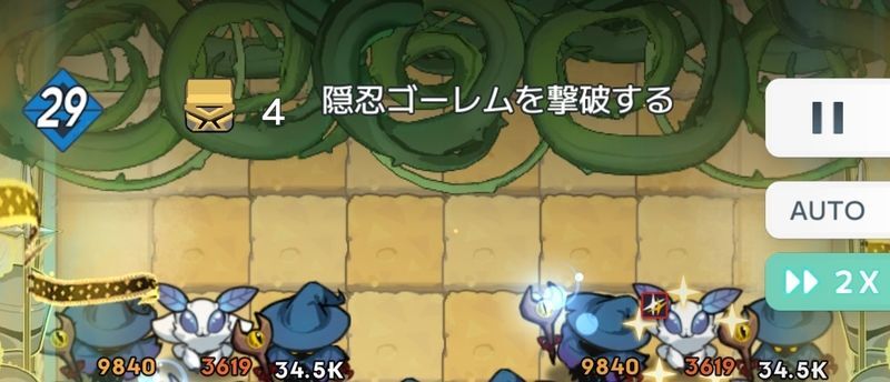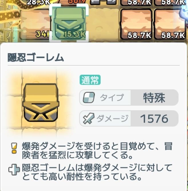 隠忍ゴーレムを指定数倒すとクリアとなります。敵数が多いのでテクニカルタイプがおすすめですが、隠忍ゴーレムのHPを削りきれないとビームを打ってくるので気をつけましょう。