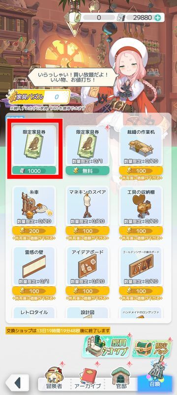 家具一覧はこちら限定家具券の入手方法