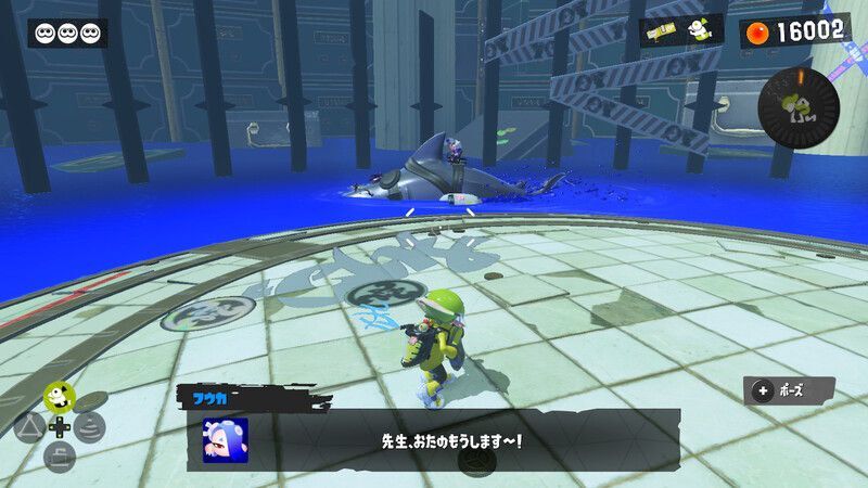 道を防いでいて触れることのできないケバインクは「Rスティック」を押し込んでイクラを消費し、コジャケをコアに投げつけて破壊することで消滅します。