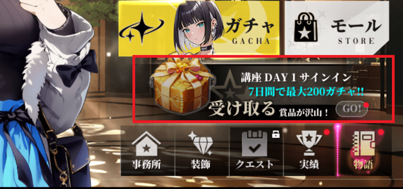| 3.ホーム画面で「メール」から報酬とログインボーナスを受け取る。 |