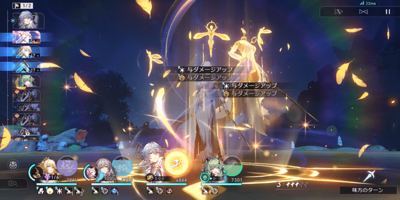 星4光円錐の中では「過去と未来」がおすすめです。ただし「過去と未来」の与ダメージUPバフは次に行動する味方のみで1ターン継続のため、召喚物にまでバフが乗らない点に注意が必要です。