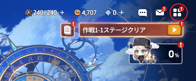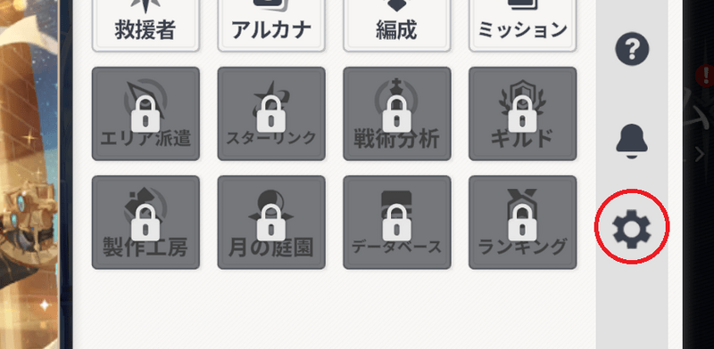 | 2.メニュー画面右下の歯車を選択する。 |
