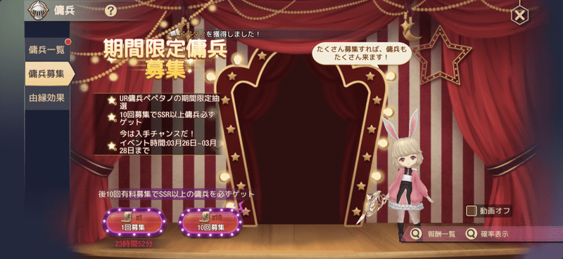 URとSSRの傭兵はステータスが高く、スキルが強力なので高レアリティのURかSSRは最低でも1体は確保したいです。