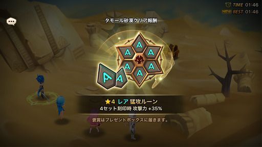 ゲーム序盤の難所であるパイモン火山をクリアするまでは、タモール砂漠クリア時にもらえる猛攻のルーンを4セットつけておきましょう。残り2セットは、元気のルーンや刃のルーンがおすすめです。