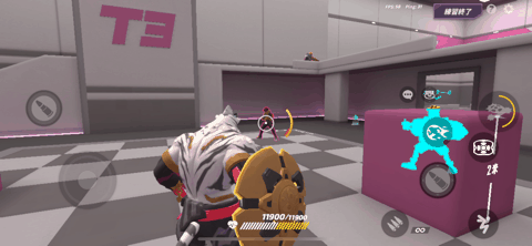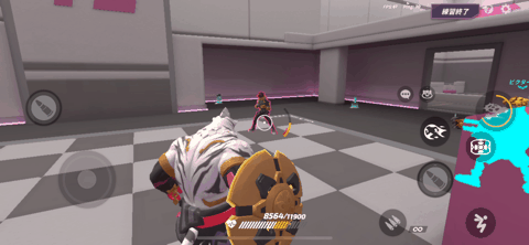 横に長いダメージの影響を受けないのバリアを展開します。バリアに耐久力がなく展開中は照星右にあるオレンジ色のゲージが消費されます。ゲージは約3秒間の使用で全消費します。また、バリア展開中自身は移動以外の行動ができないため注意が必要があります。