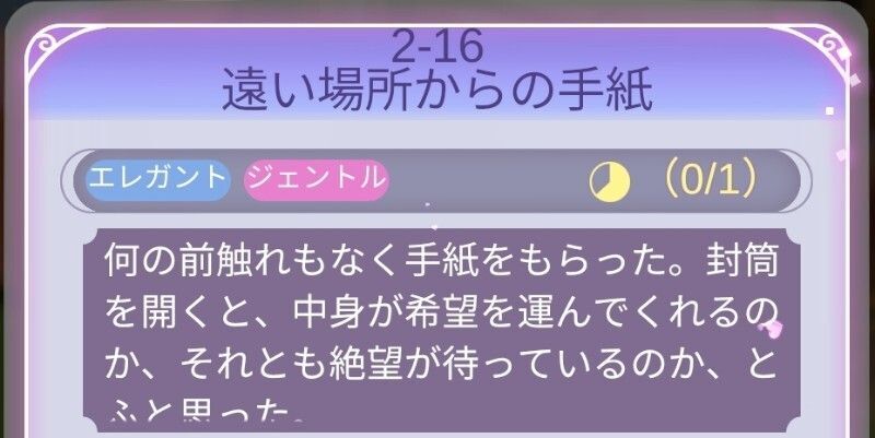 | ステージイベント (※) | 1ルート (※参考:ブックの進捗度が100にならない) | ||