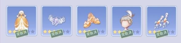 | Perfect攻略 | ヒント衣装が初の衣装セットになるため、ヒント衣装3つ作る必要があるが、どれも他の衣装を素材として含むため、素材集めが大変になる。3つ作るのが手間であれば、カーテンコール(ドレス)だけでもパーフェクト可能のため、ドレスの作成もオススメ。 |