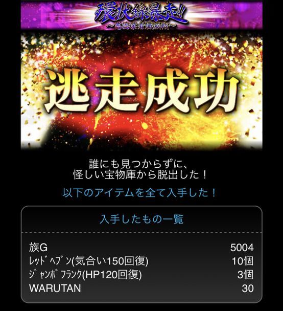 逃走に成功すれば、それまでに手に入れたアイテムはすべて入手できます。