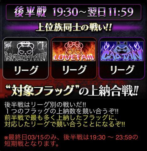 | フラッグ上納時間 | 強襲戦開始 | 結果発表 |