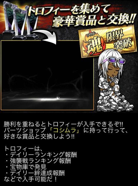 トロフィーはリーグ戦以外にも、次のシーンで入手することができます!