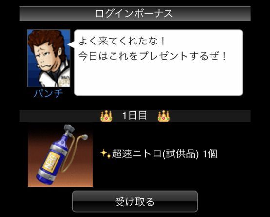 | 5日目 | 超速ニトロ(試作品)1個 | 攻撃3回分パワーアップ&アイテム確定ドロップ |