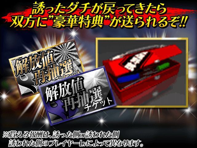 ダチが戻ってくると、双方に豪華特典が送られます。