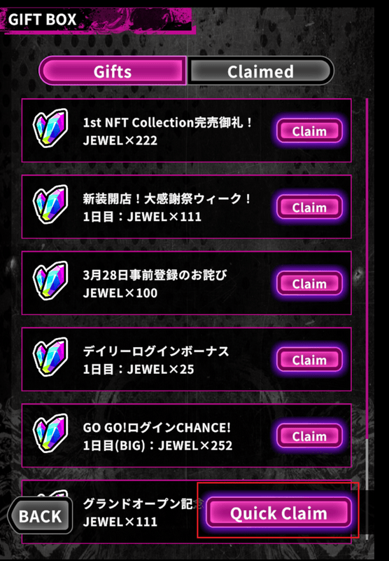 2.事前登録報酬を「Quick Claim」で全て受け取る