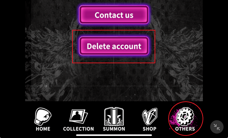 4.リセマラを続行する場合は、画面下部の「OTHERS」をタップして、一番下の「Delete account」を選択して、最初からやり直し