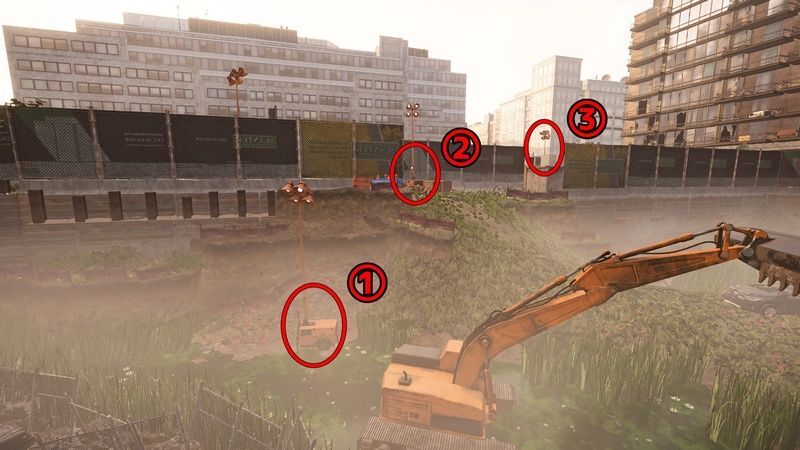 - ショベルカーの近くに高台があり、そこの電球を撃つ。