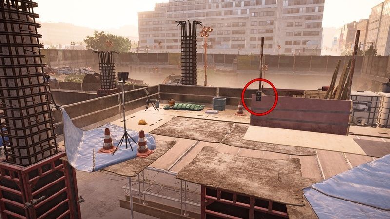 - セーフハウス内の掲示板をインタラクト。矢印に従って屋上へ。