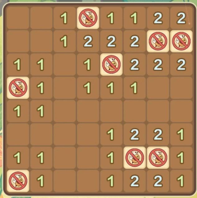 - マスの数字と周囲8マスにいる封印されたハチミツの数が一致している場合、マスをタップすると周囲のハチミツを一度に採集します。