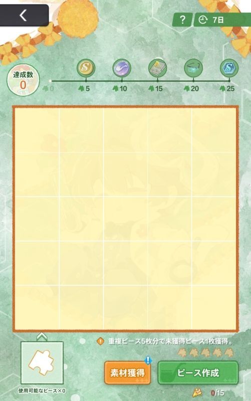 ※重複したピースが5枚になると、未獲得ピースへ変換されます。