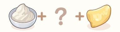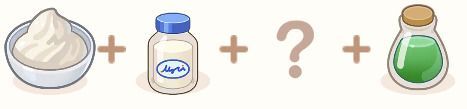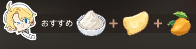 材料準備で手に入る「キッチンの甘い試練・材料」は、生クリームともう1つ食材がランダムで入っています。