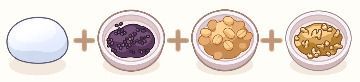 ![]() あんこ団子 | ![]() だんご粉+あんこ+小豆 |