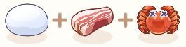 ![]() カニ入り肉団子 | ![]() だんご粉+肉+カニ |