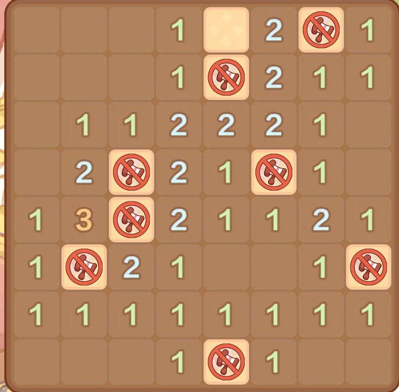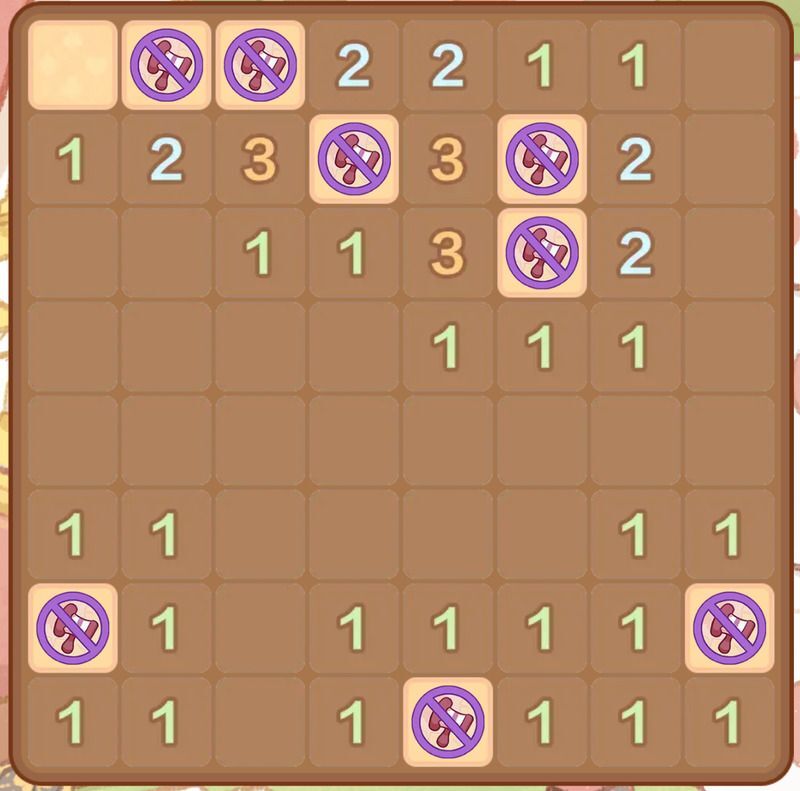 - マスの数字と周囲8マスにいるマークされたお仕置きカードの数が一致している場合、マスをタップすると周囲のホムカードを一度に集めます。