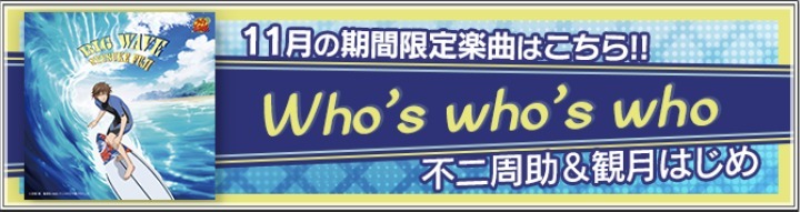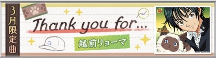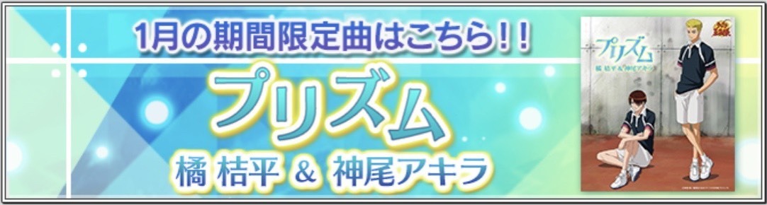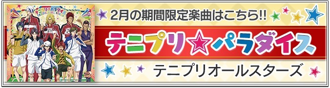 | 2024/02 | ![]() ・『バレンタイン・キッス』新規実装(全2曲) (福士ミチル with 銀華中) (佐伯虎次郎 with 六角中) ・『バレンタイン・キッス』各種復刻(全23曲) |