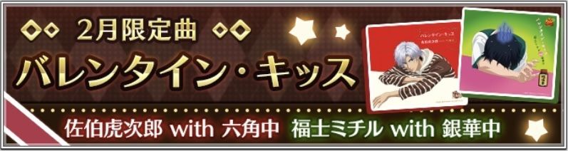 | 2020/02 | バレンタイン・キッス各種 (全20曲) ・新規実装「バレンタイン・キッス(丸井ブン太)」 |